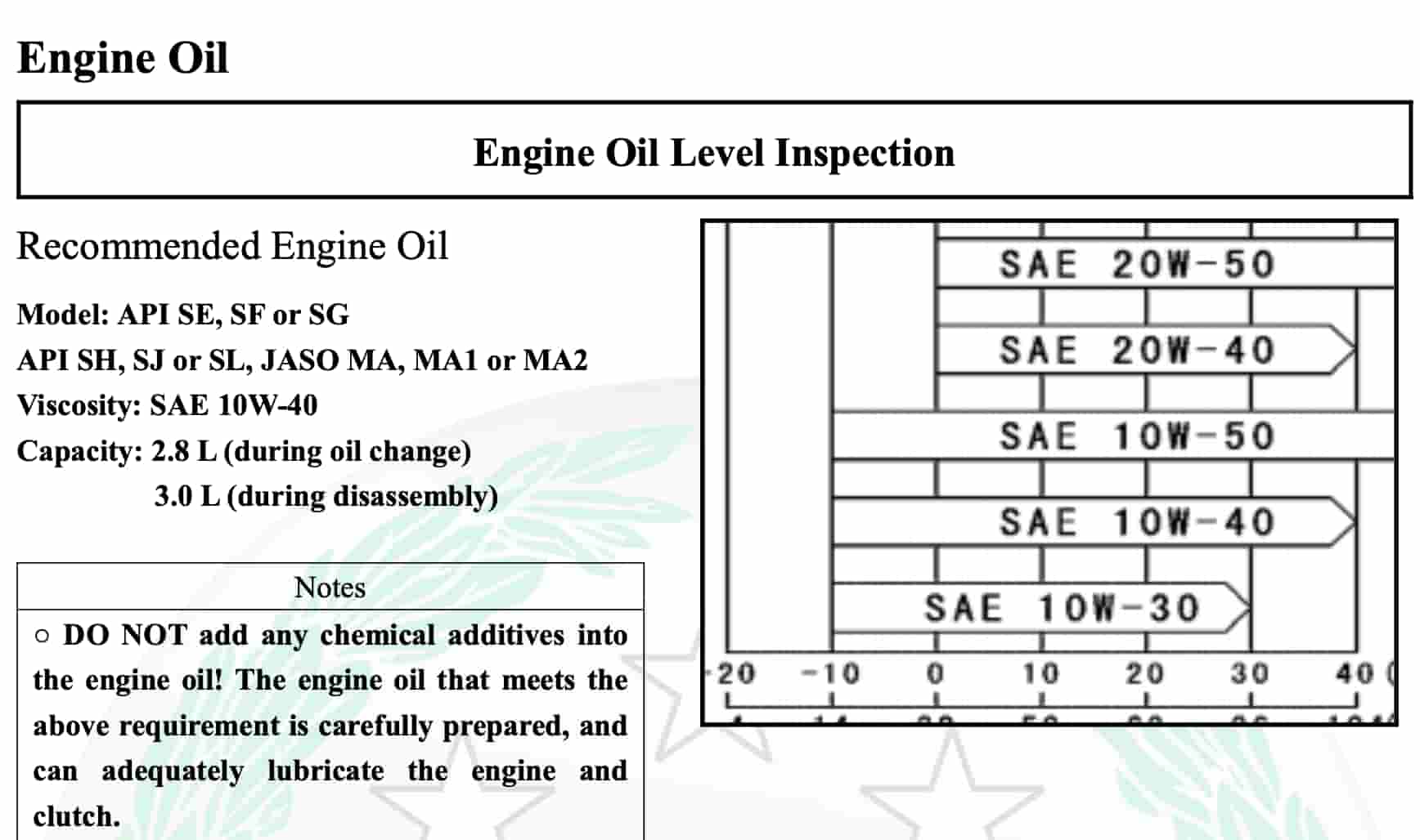 همیشه دقیقاً همان استانداردی را انتخاب کنید که سازندهٔ موتور در دفترچهٔ آن مشخص کرده است.