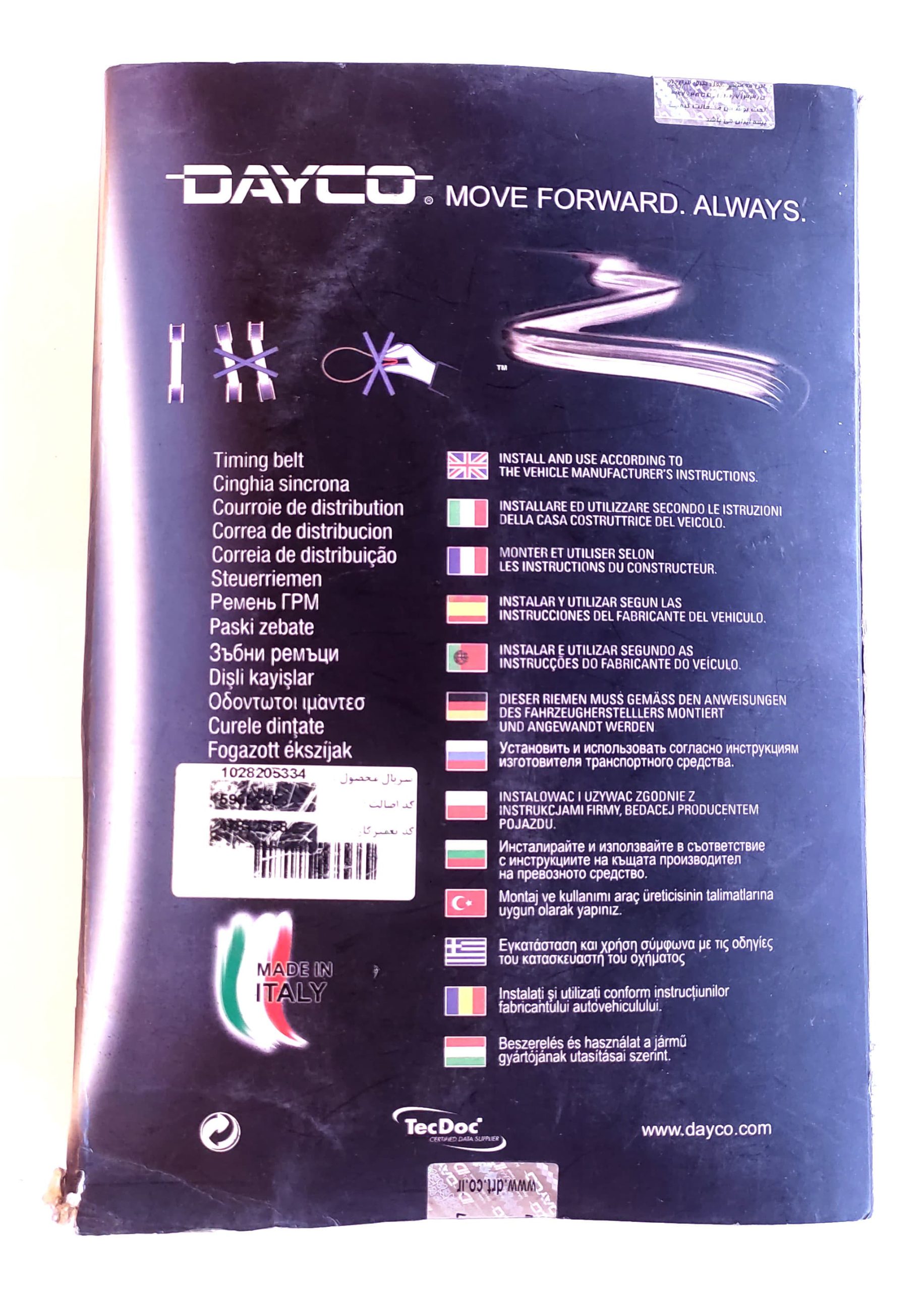 Dayco یکی از برندهای معتبر و پیشرو جهانی در زمینه طراحی و تولید سیستمهای انتقال نیرو و تسمههای تایم موتور است که ریشهای ایتالیایی دارد و بر پایه دقت، ظرافت و مهندسی پیشرفته ایتالیا شکل گرفته است. تسمهتایمهای Dayco با بهرهگیری از بیش از یک قرن تجربه مهندسی، مطابق با استانداردهای سختگیرانه خودروسازان مطرحی همچون Fiat، Alfa Romeo، Volkswagen، Ford و General Motors طراحی و تولید میشوند و دقت بالای تایمینگ، دوام طولانیمدت و عملکرد پایدار موتور را تضمین میکنند. ترکیب طراحی دقیق ایتالیایی، استفاده از مواد پیشرفته، فناوریهای نوین و کنترل کیفیت چندمرحلهای، تسمههای تایم Dayco را به انتخابی مطمئن برای موتورهای مدرن و پرکارکرد تبدیل کرده است.